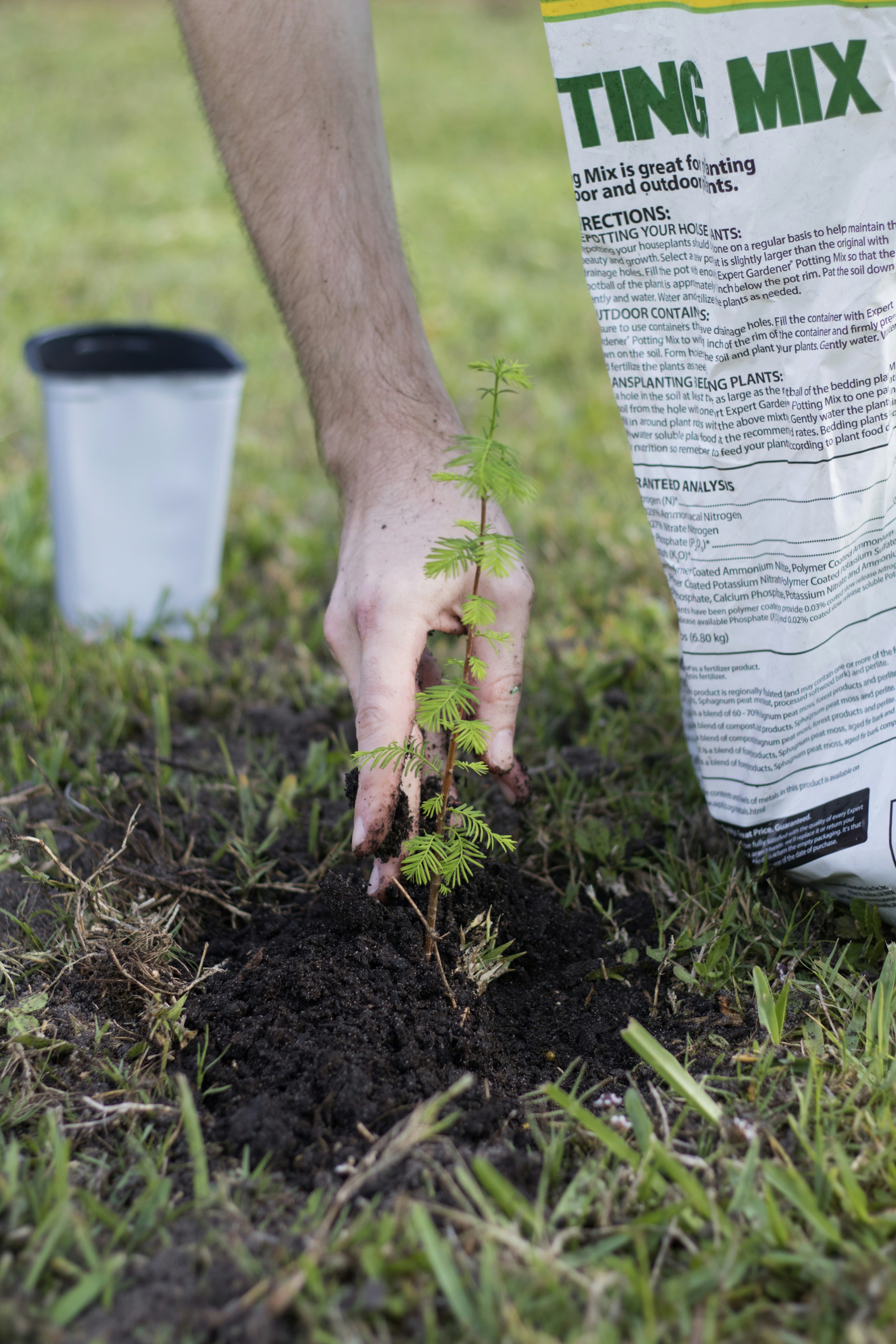 Depending on which trees you choose, ask the sales associate where you buy them about the required soil type and recommended conditions. Find out how deep the trees should be planted and whether they need to be protected from wildlife or rough weather. Certain tree types might need to be planted in semi-shady areas or in full sunlight to reach their growth potential. If you are planting more than one of the same type, determine how close together they should be. The same information will be needed when planting trees of different types in the same area of a lawn.
